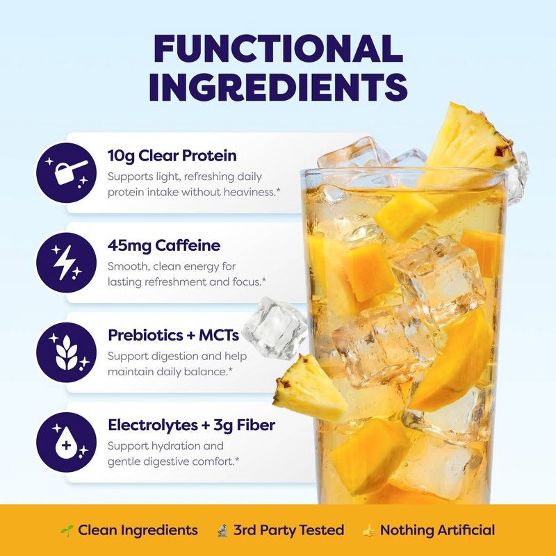 - Flavor: Juicy mango and sweet pineapple, refreshingly light with clear protein