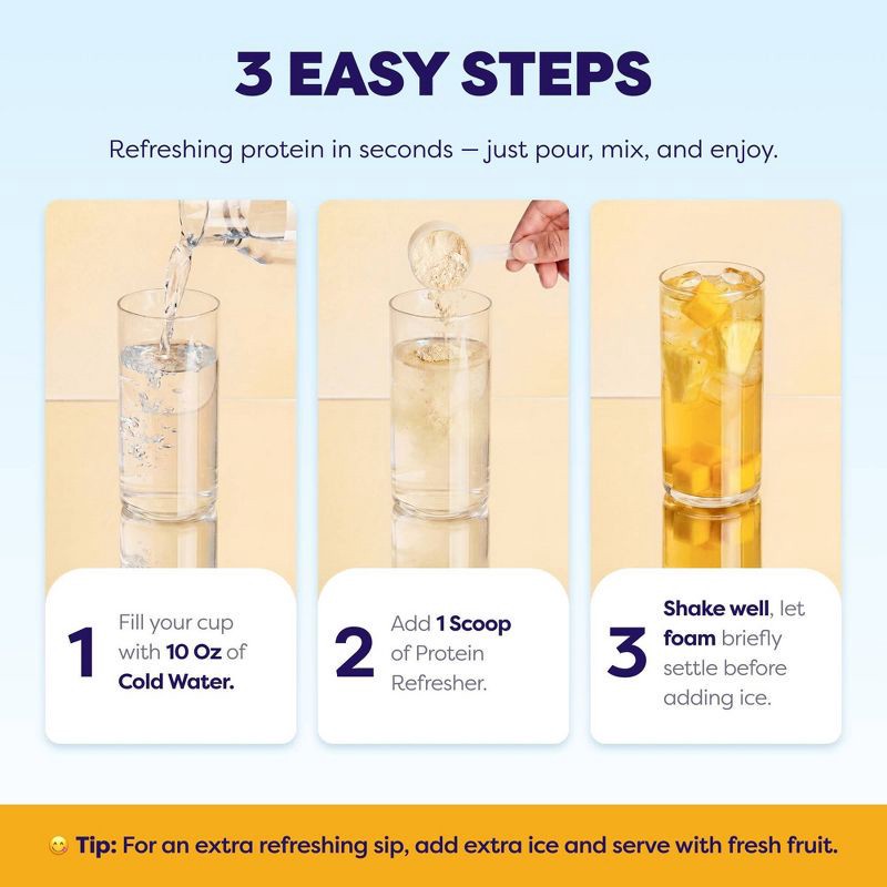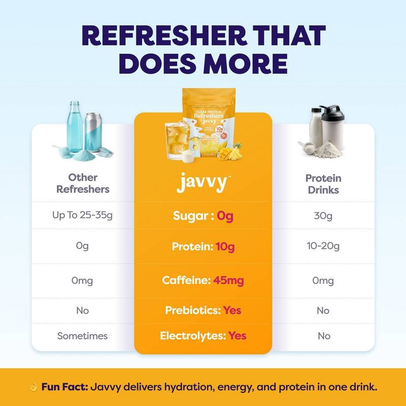 Your new, better-for-you Clear Protein Refresher, crafted by the brand you trust. Each sip delivers 10g of clear protein, 3g of Fiber, electrolytes, prebiotics, and 45mg of caffeine for lasting nouris…
