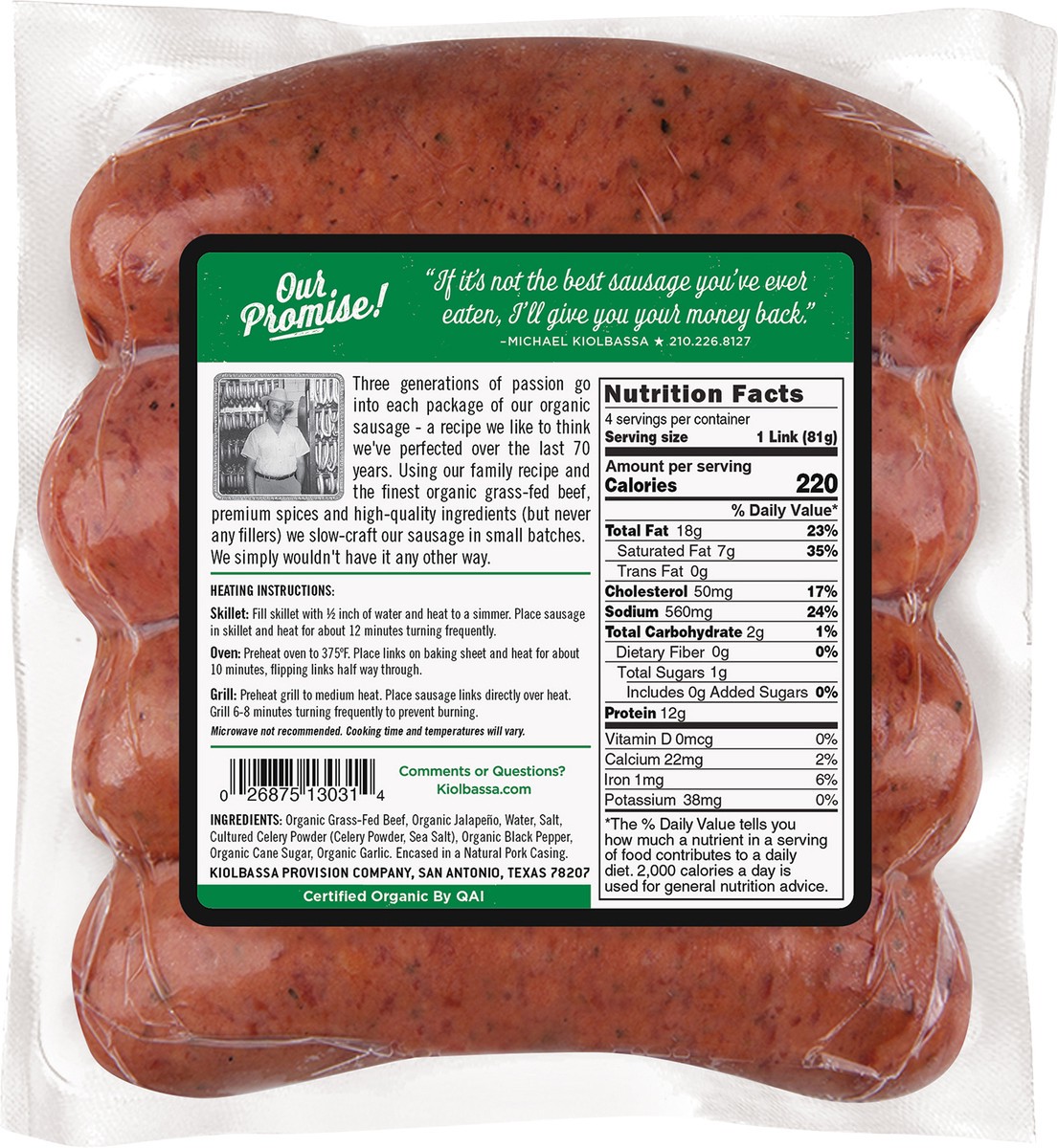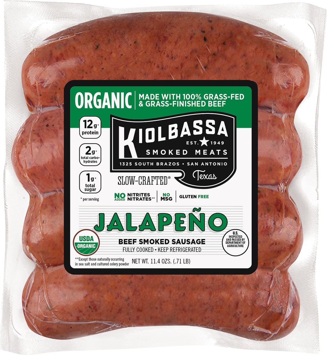 Kiolbassa Organic Jalapeño Beef Hickory Smoked Sausage