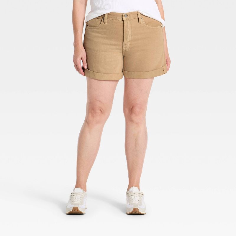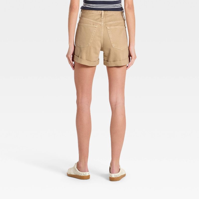 Women's Mid-Rise 90s Baggy Cuff Denim Shorts - Universal Thread™ Khaki 10