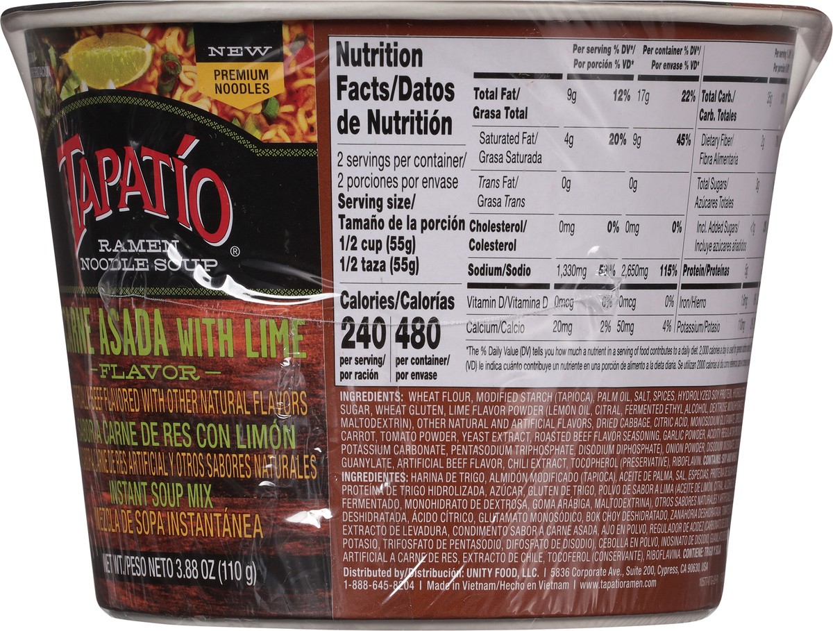 Tapatio Hot Carne Asada with Lime Flavor Ramen Noodle Soup 3.88 oz