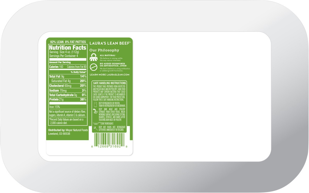Laura's Lean Beef 92% Lean All Natural Ground Beef Patties
