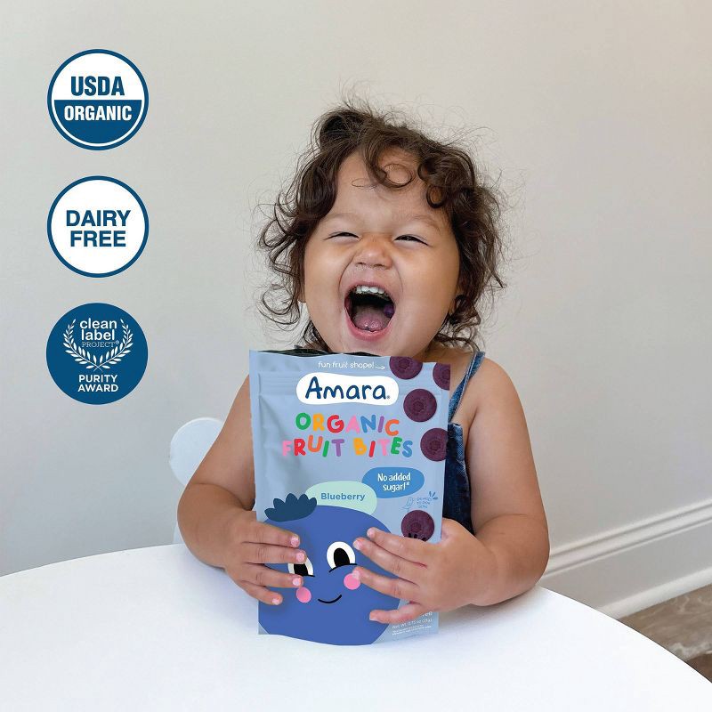 Amara Organic Fruit Bites Blueberry Baby Snacks - 0.75oz: Stage 3, Plant-Based, No Artificial Flavors