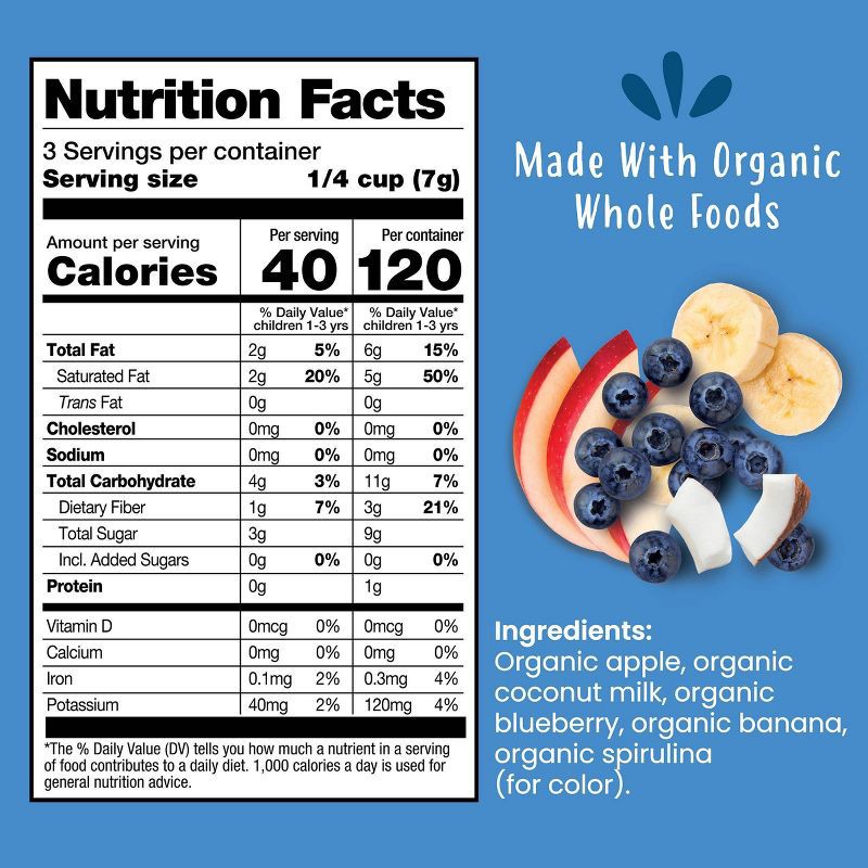 Organic apple, organic coconut milk, organic blueberry, organic banana, organic spirulina(for color).