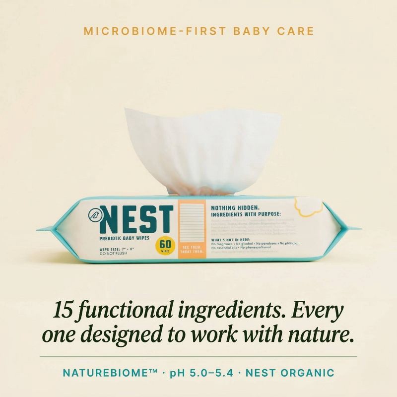 The diaper change is skincare now.Most wipes were designed to clean skin. Nest Prebiotic Baby Wipes were designed to contribute to it. There's a difference — and it starts with two prebiotics in every…