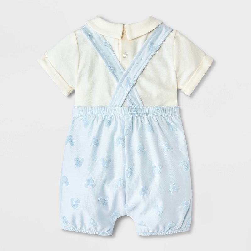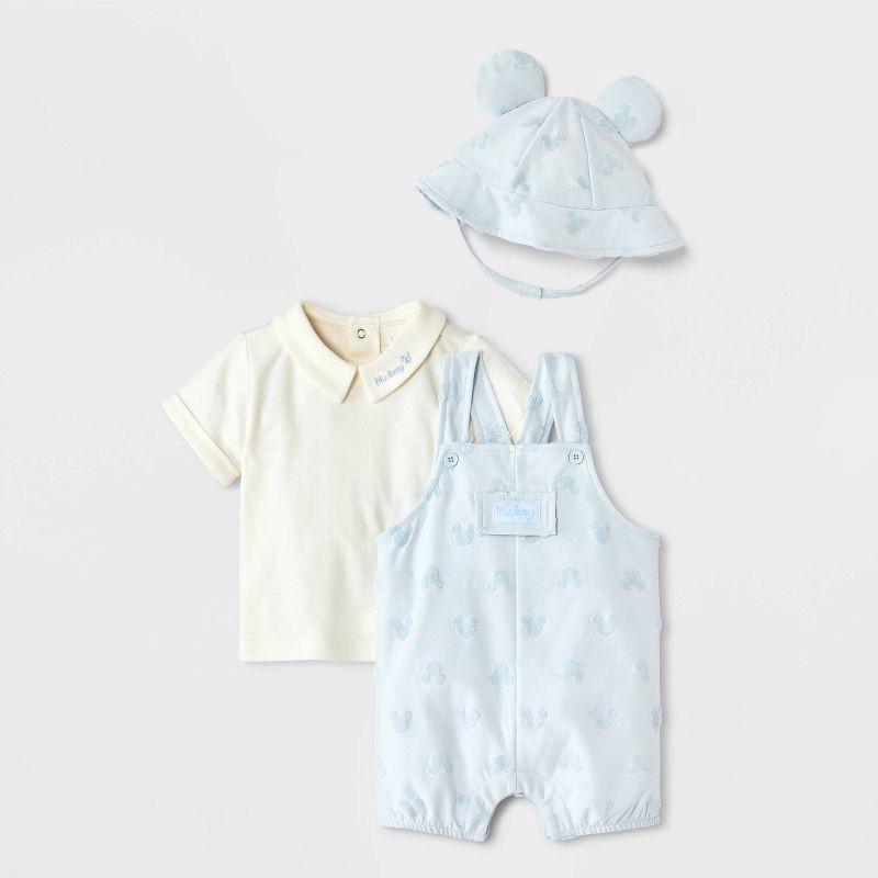 Baby Boys' 3pc Disney Mickey Mouse Bodysuit & Shorts Overalls Set with Hat - Blue 0-3M