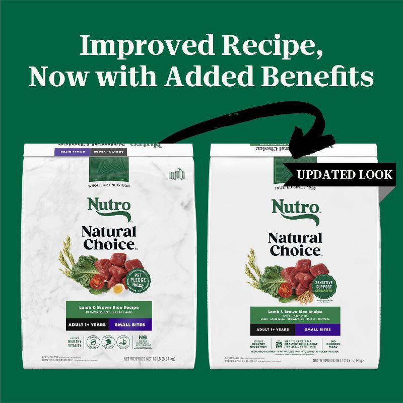 - Contains: Contains one (1) 12 lb. bag of Nutro Natural Choice Adult Small Bites Dog Food, Lamb & Brown Rice Recipe.