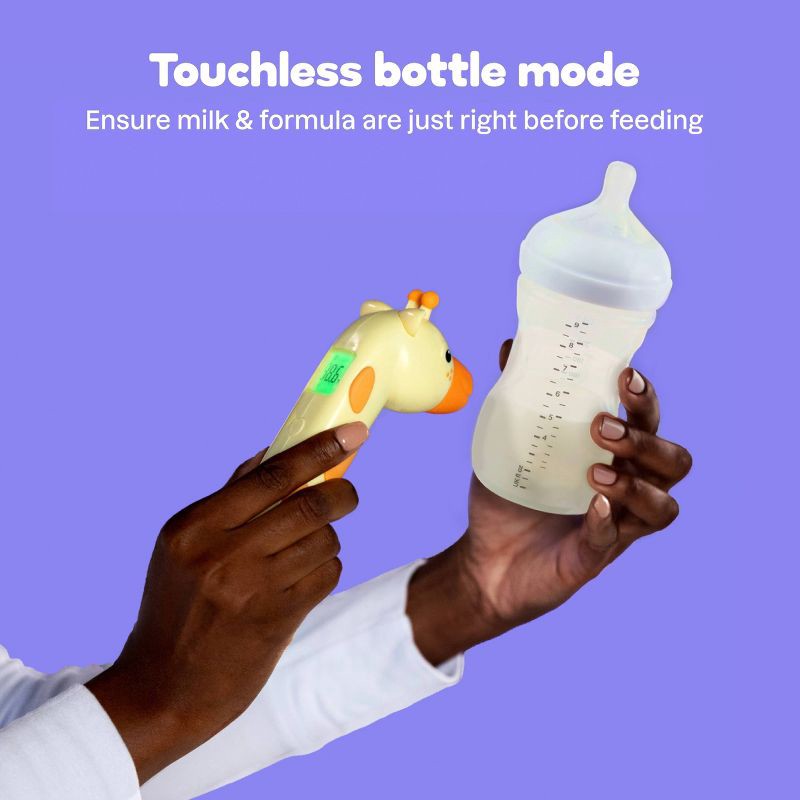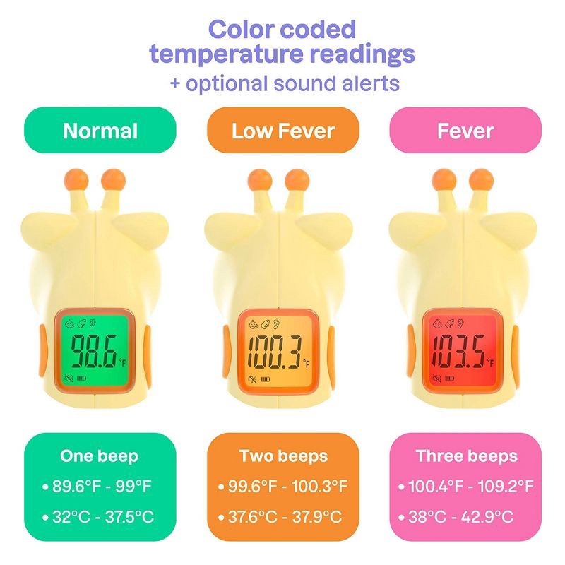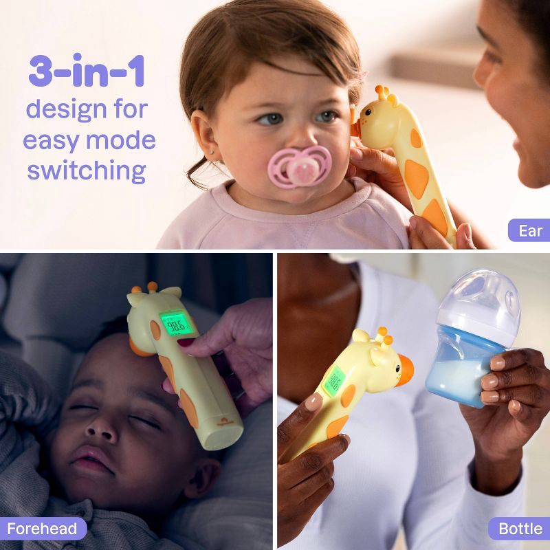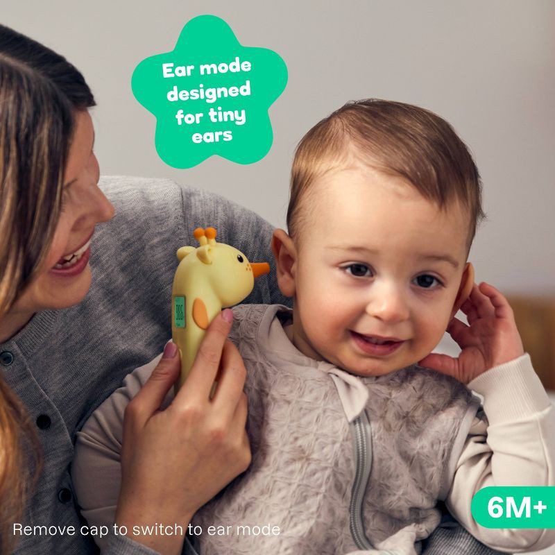 - 1-SECOND, STRESS-FREE READINGS: The friendly giraffe design helps keep kids engaged, making it easier for parents to get accurate temperature readings. Forehead mode works without waking a sleeping child, and ear mode measures core temperature quickly and reliably.
