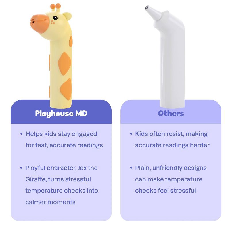 Meet Jax the Giraffe, the doctor-designed, kid-inspired Infrared Thermometer that helps little ones stay engaged and still for fast, accurate readings. The 3-in-1 design measures ear, forehead, and bo…