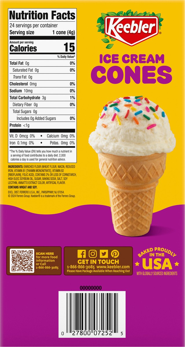 Keebler Ice Cream Cones Box 24 Count - 3 Oz