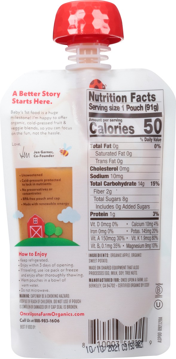 Once Upon a Farm Apple and Sweet Potato Organic Baby Food Pouch, 3.2 oz