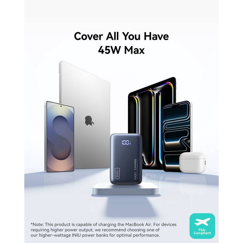 - Vast Compatibility: INIU portable charger fast charging fits every device from as big as iPads to as small as AirPods. In an automatically-adapted trickle-charging mode, small devices can also get optimized power without affecting battery health.