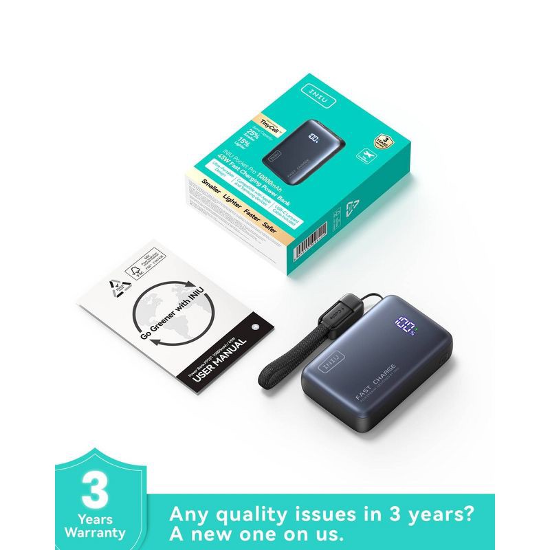 - From INIU--the SAFE Fast Charge Pro: Experience the safest charging with over 38 million global users. At INIU, we use only the highest-grade materials, so we do have the confidence to provide an industry-leading 3-Year INIU Warranty.