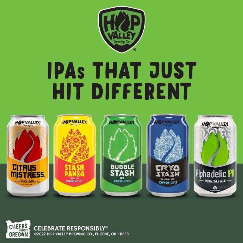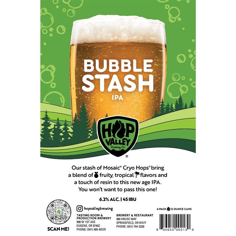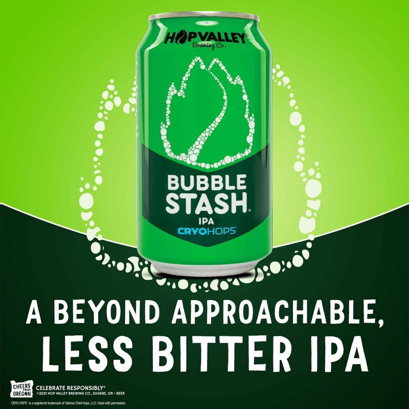 - You'll get six 12-ounce beer cans of Hop Valley Bubble Stash IPA Beer