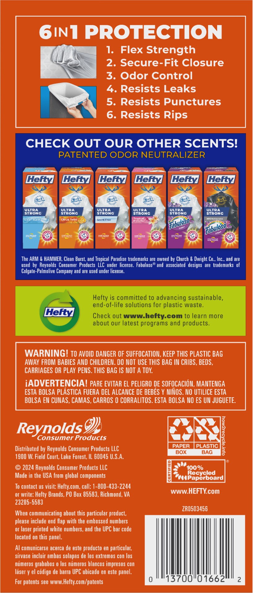 Trust Hefty Ultra Strong 13 Gallon Trash Bags to keep your kitchen waste contained—all the way from the can to the curb. Thanks to 6-in-1 Protection, these tall kitchen trash bags offer flexible stren…