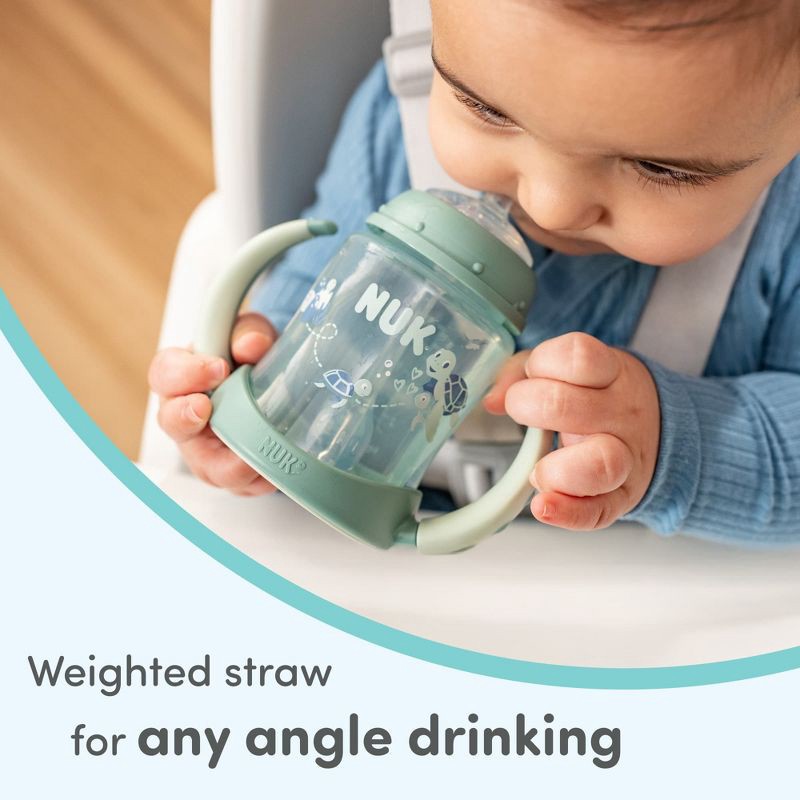 - Weighted straw follows liquid in the cup, so your little one can drink from any angle