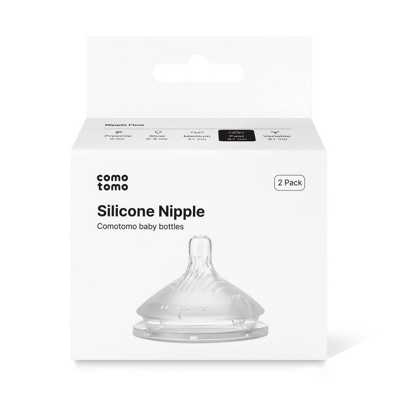 Comotomo Silicone Replacement Bottle Nipples Gen 2 - Level 3 - Fast Flow - 2pk