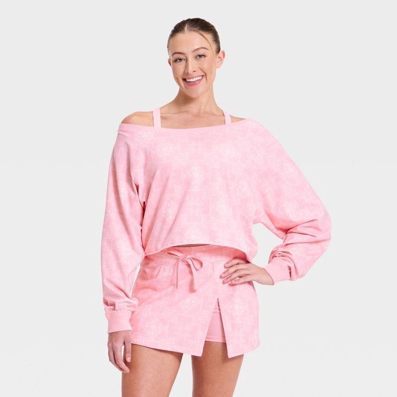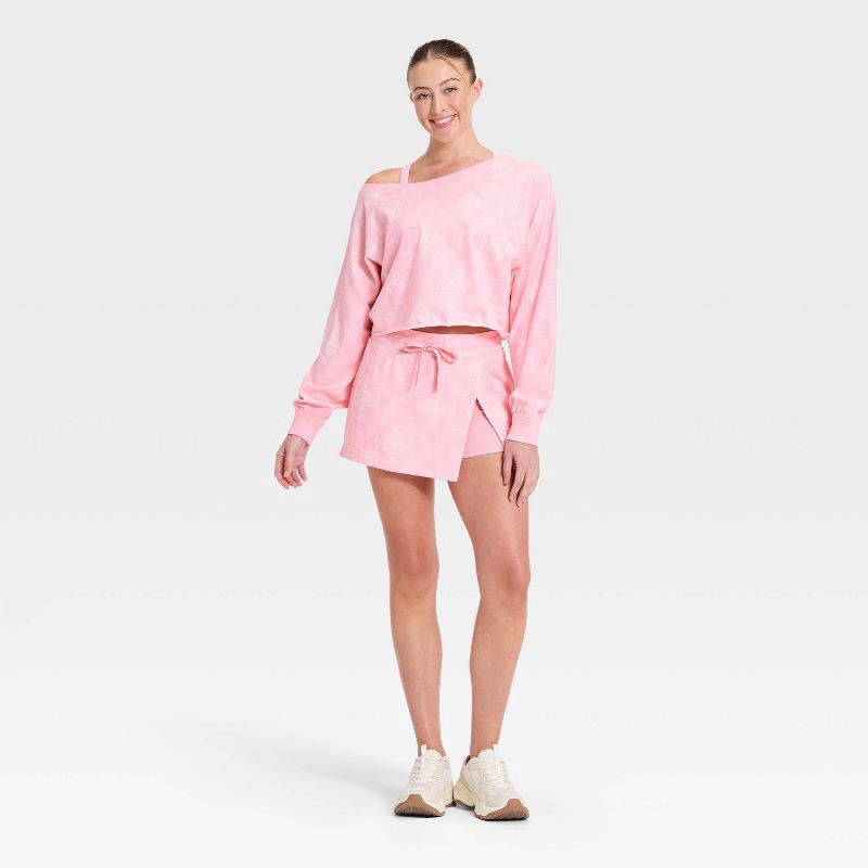 Upgrade your activewear with this Washed Jersey Off-The-Shoulder Cropped Long-Sleeve Top from JoyLab™. Made from a mix of cotton, recycled cotton and spandex, this long-sleeve top offers stretchy comf…