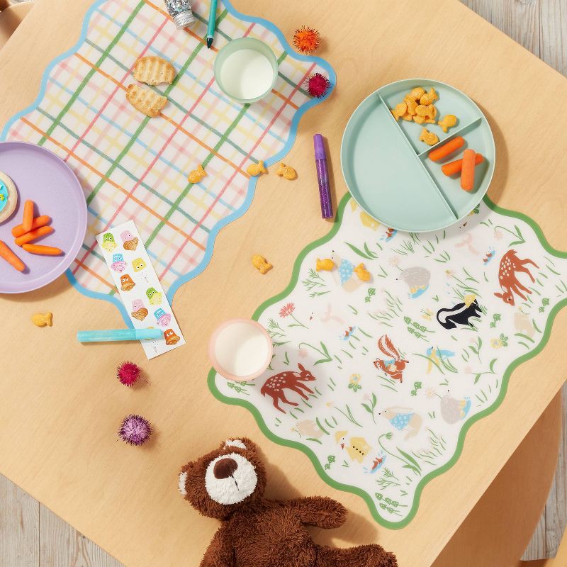 2pk Print and Gingham Placemat Green - Pillowfort™