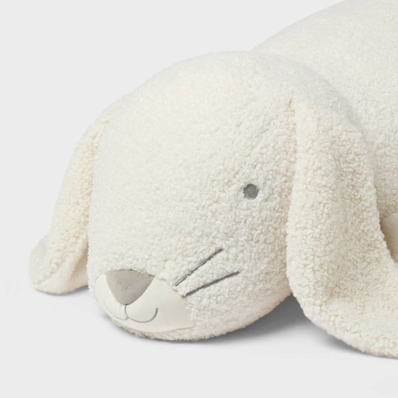 This Jumbo Boucle Bunny Bed Novelty Plush Pillow from Pillowfort™ brings adorable comfort to your child's room. This jumbo plush novelty pillow features a bunny-shaped boucle design in a lying-down po…
