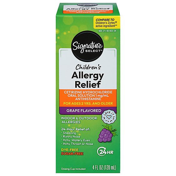 Signature Care Allergy Relief Childrens 24 Hour Cetirizine Hydrochloride Grape Flavor - 4 Fl. Oz.