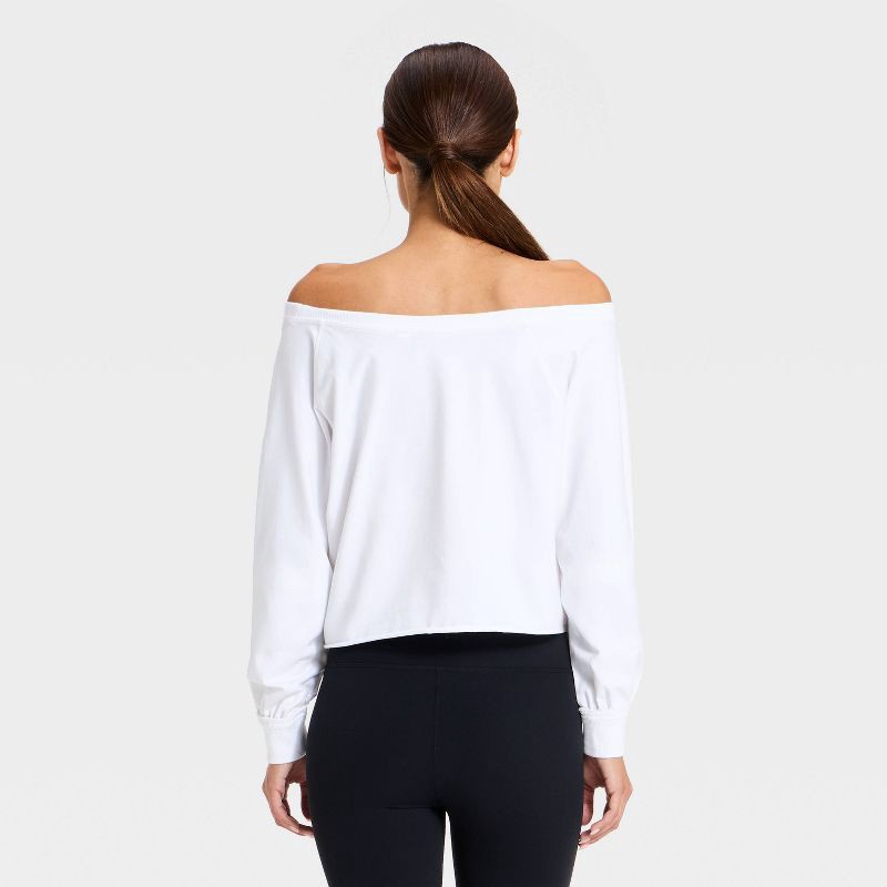Women's Washed Jersey Off The Shoulder Cropped Long Sleeve Top - JoyLab™ White L