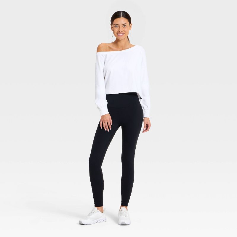 Upgrade your activewear with this Washed Jersey Off-The-Shoulder Cropped Long-Sleeve Top from JoyLab™. Made from a mix of cotton, recycled cotton and spandex, this long-sleeve top offers stretchy comf…