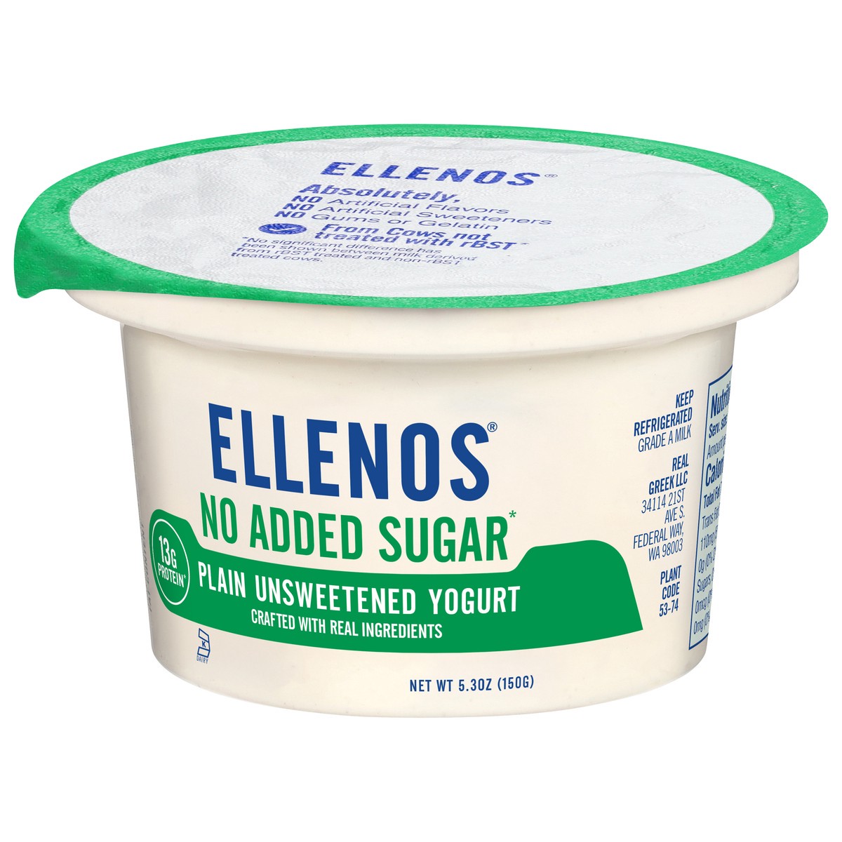 Ellenos Plain Unsweetened Greek Yogurt Cup, 5.3 oz