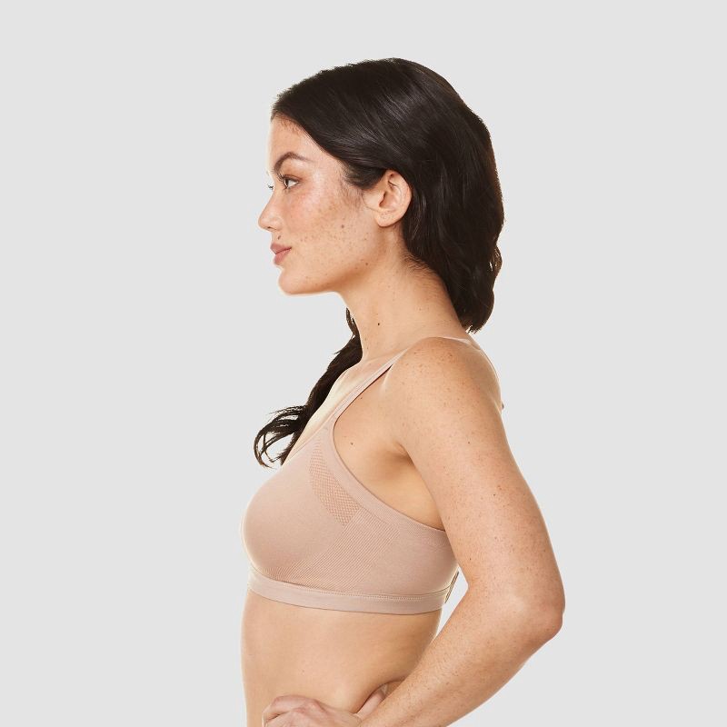 Simply Perfect by Warner's Women's Underarm Smoothing Seamless Wireless Bra - Toasted Almond L: Medium Support, Adjustable Straps