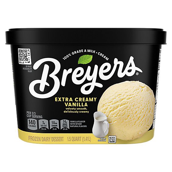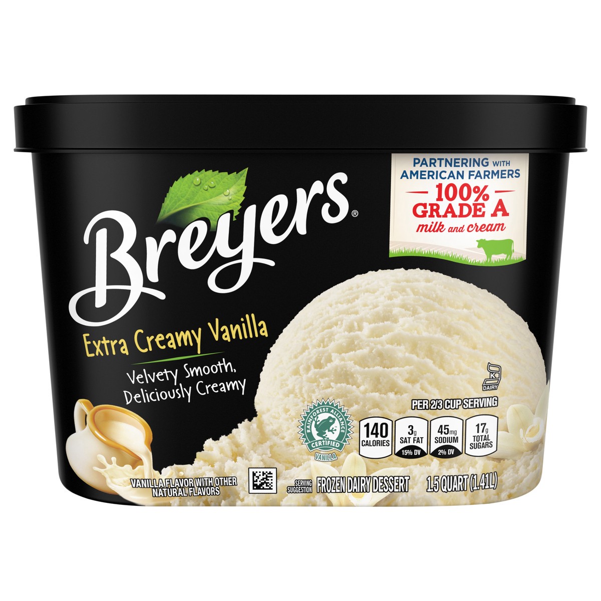 Breyers Extra Creamy Vanilla is our creamiest vanilla. Fresh cream and sweet vanilla come together to make this frozen dairy dessert creamier than ever before! Add this frozen treat to Brownie Bowl Su…