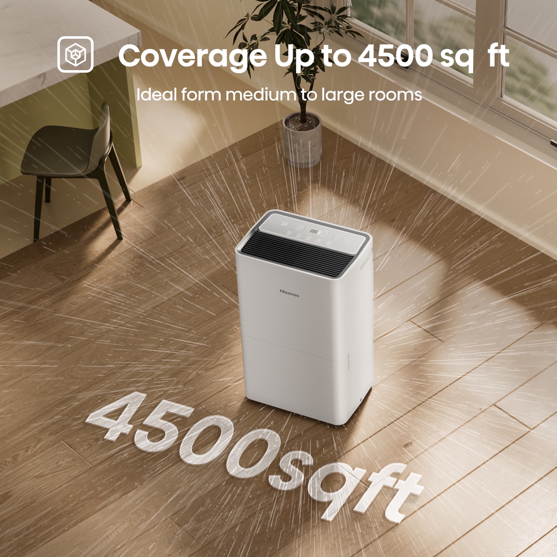 Compact size for smaller spaces, and covering an area up to 4,500 sqft. Low noise airflow system to ensure quiet operation, achieving a 48 dB(A) sound level on the low setting. Bucket full indicator a…