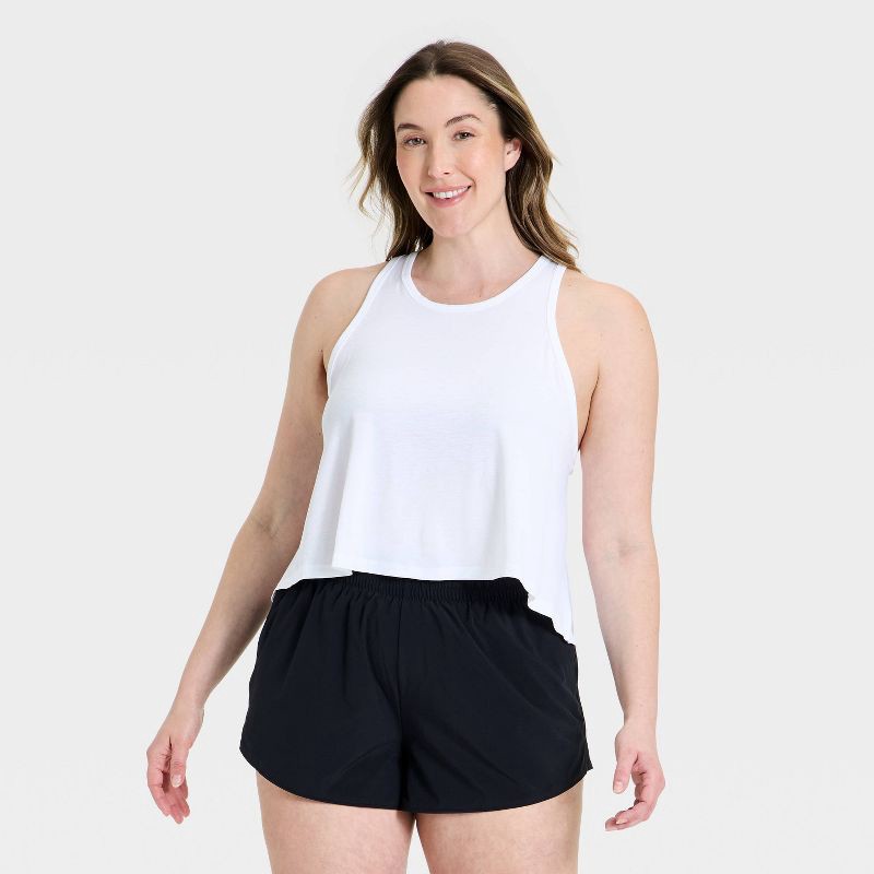 Women's Mesh Back Cropped Run Tank Top - All In Motion™ White XXL