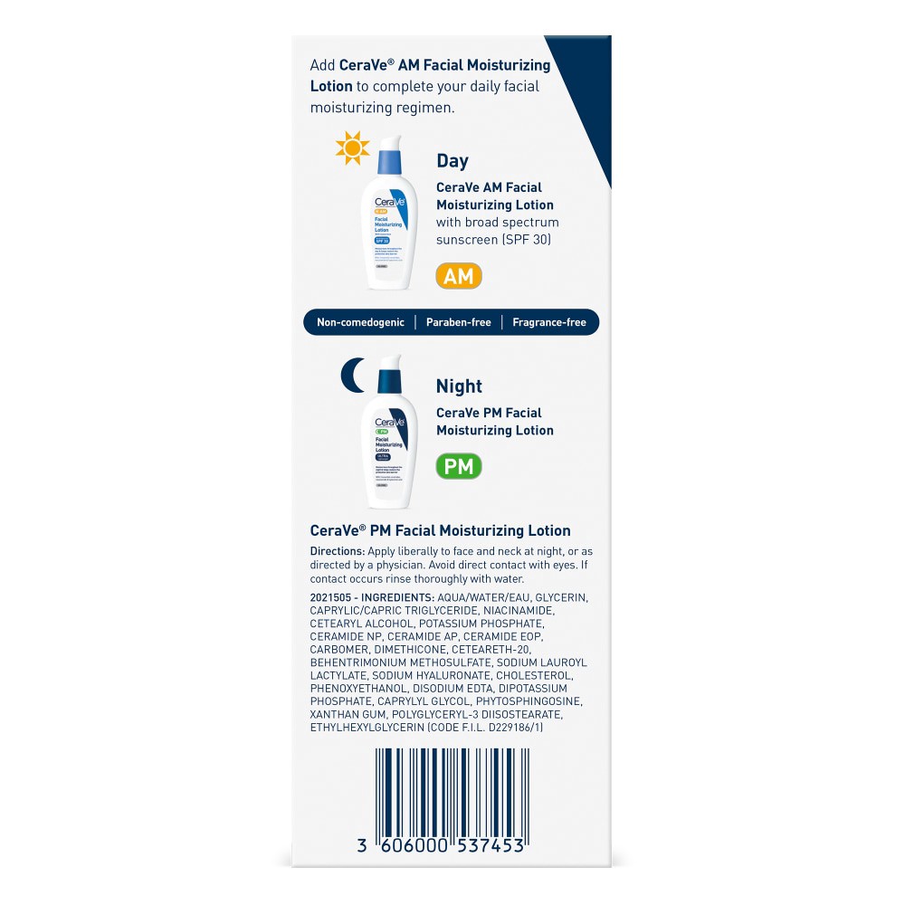 Developed with dermatologists, CeraVe PM Facial Moisturizing Lotion has an ultra lightweight, oil free formula that moisturizes throughout the night and helps restore the protective skin barrier with …