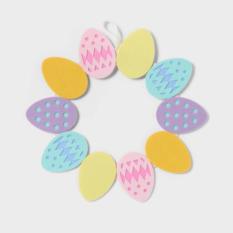 Brighten up your home this Easter with the Easter Egg Felt Wreath - Spritz™. This charming circular wreath, crafted from soft plush construction, features a delightful array of multicolored faux flora…