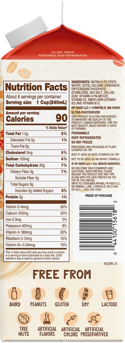 OATMILK (FILTERED WATER, OATS), CALCIUM CARBONATE, DIPOTASSIUM PHOSPHATE (STABILIZER), SEA SALT, GELLAN GUM, VITAMIN A PALMITATE, VITAMIN D2, RIBOFLAVIN (VITAMIN B2) AND VITAMIN B12.