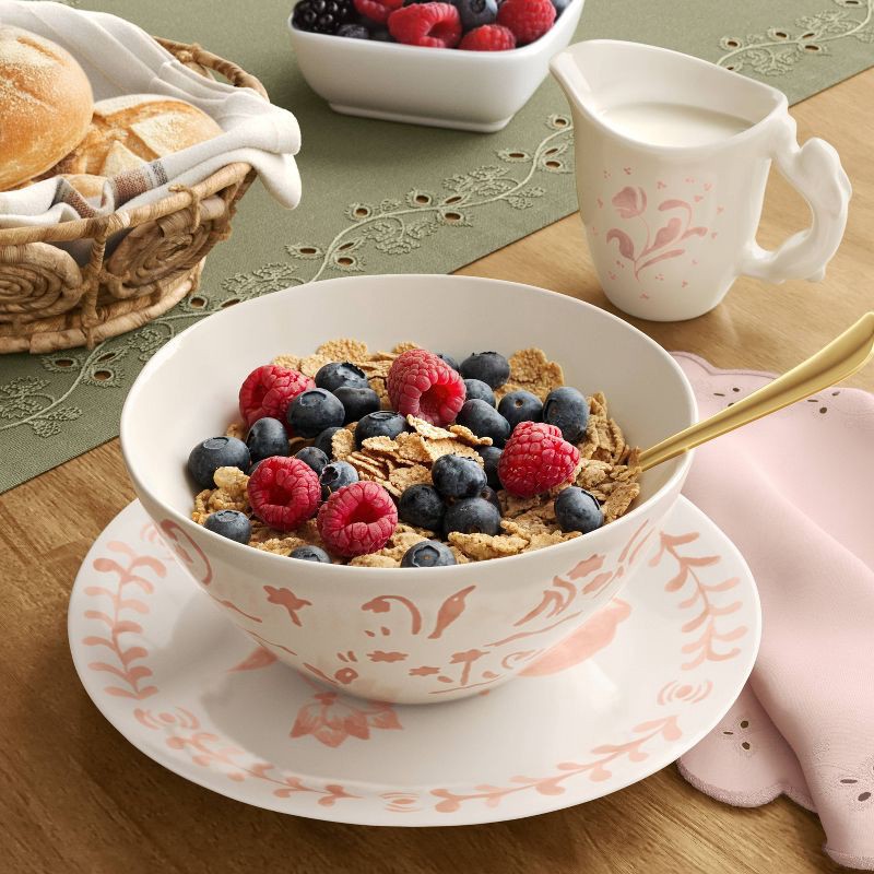 Add springtime charm to your serveware with this 22.5-Ounce Stoneware Aralia Cereal Bowl Hand Painted from Threshold™. Made from stoneware, this cream-color cereal bowl features a hand-painted pink bu…