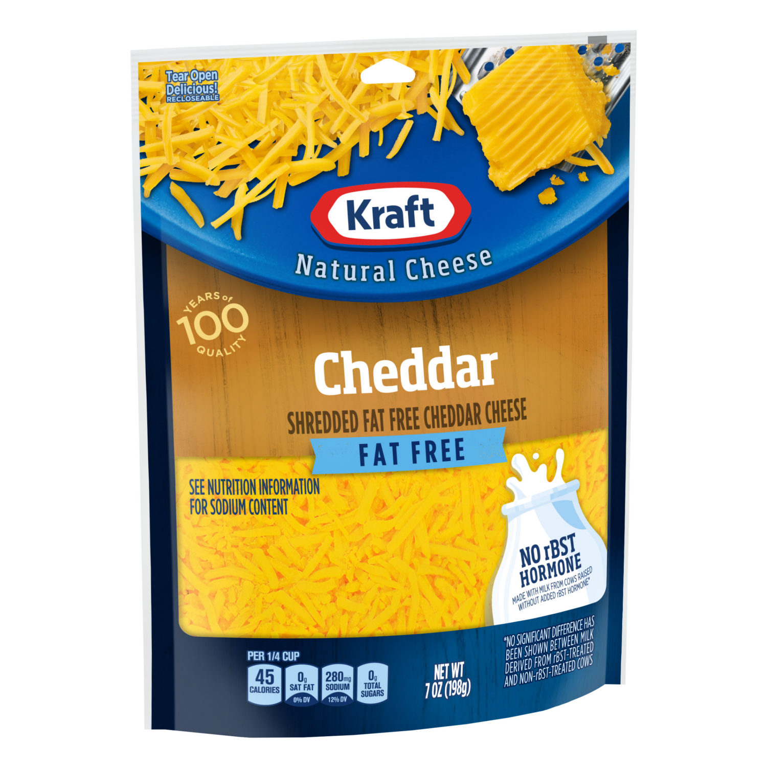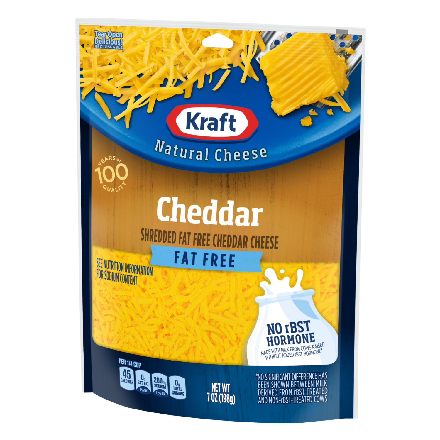 Kraft Cheddar Fat Free Shredded Cheese, 7 oz Bag