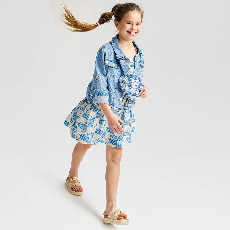 Your child will love showing their patriotic spirit in this 4th of July A-Line Dress from Cat & Jack™. Made from lightweight 100% cotton fabric with lining, this sleeveless gauze dress features an Ame…