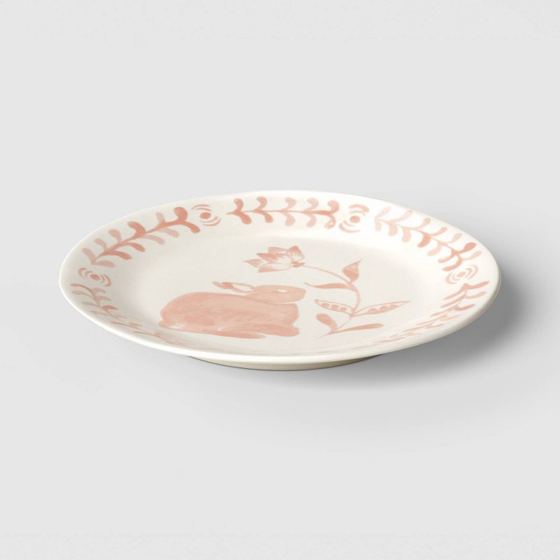 8.5" Easter Stoneware Aralia Bunny Salad Plate Hand Painted Pink - Threshold™