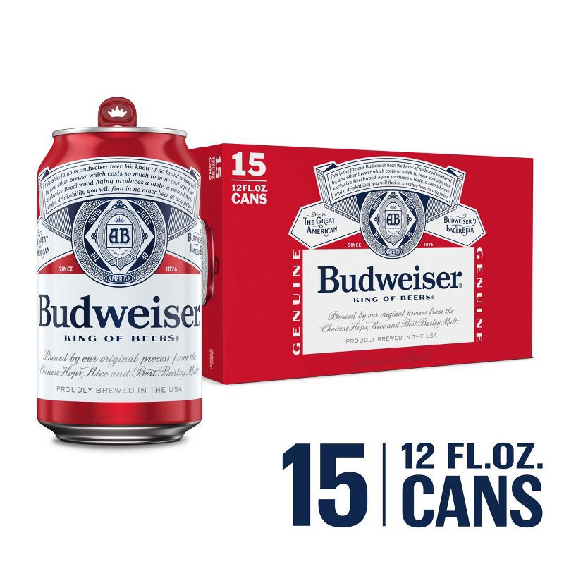 Budweiser American Lager Beer - 15pk/12 fl oz Can