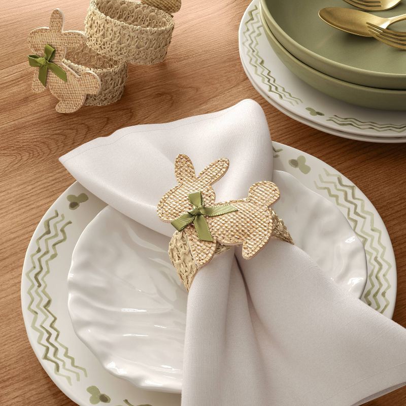 Instantly elevate your table decor with these 2-Pack Easter Woven Bunny Napkin Rings from Threshold™. These Easter napkin rings feature a woven bunny accent with a green bow on a circular ring to brin…