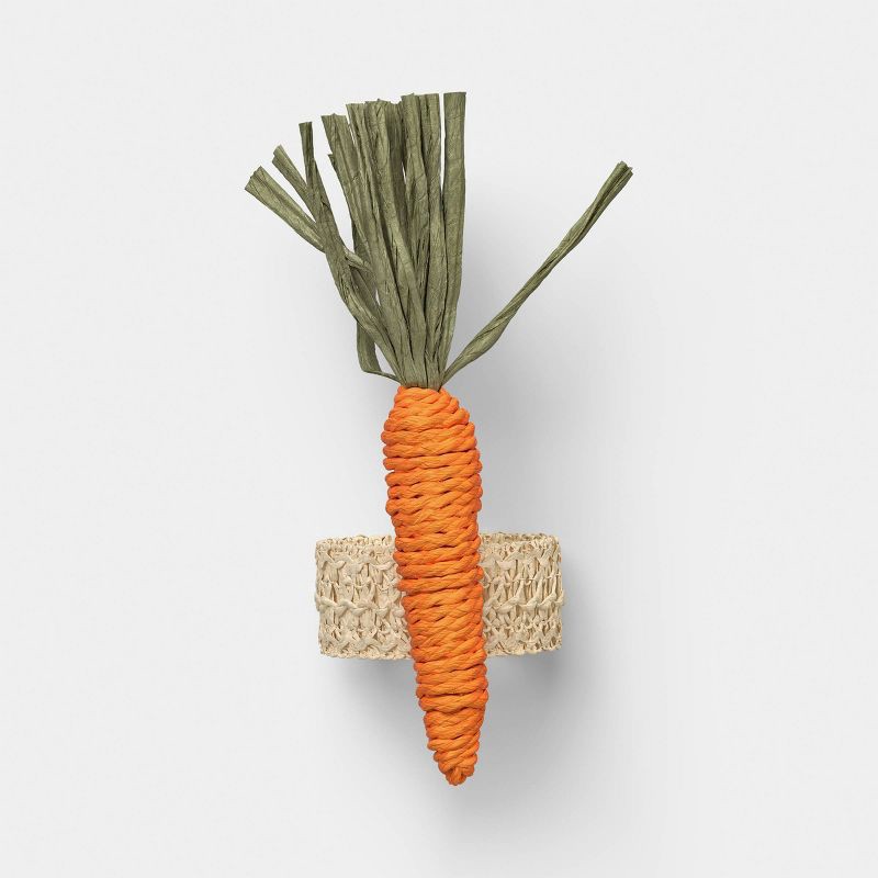Add a playful seasonal touch to your table setting with these 2-Pack Easter Woven Carrot Napkin Rings from Threshold™. These Easter napkin rings feature an orange woven carrot accent on a circular rin…