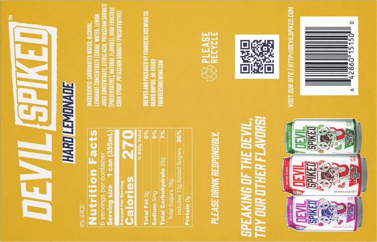 Devil Spiked Hard Lemonade, 6 Pack, 12 fl oz Can, 10% ABV