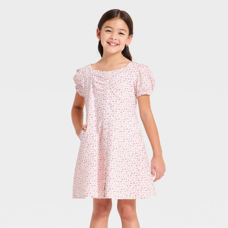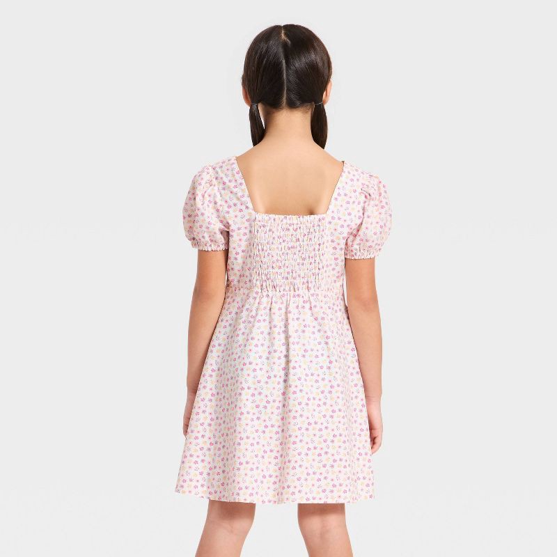 Girls' Puff Short Sleeve Woven Floral Dress - Cat & Jack™ Cream M