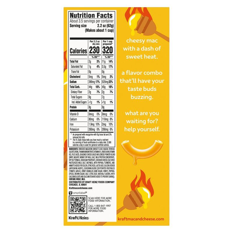 - Box includes macaroni and cheese powder mixed with hot honey flavor with other natural flavors