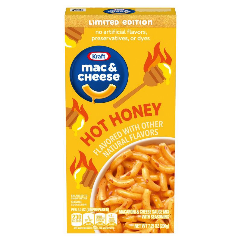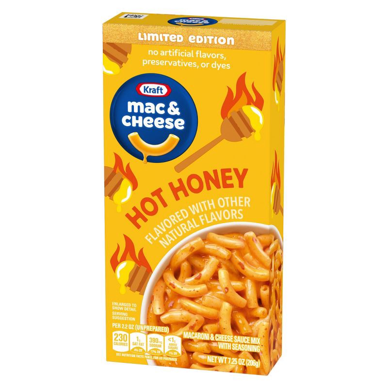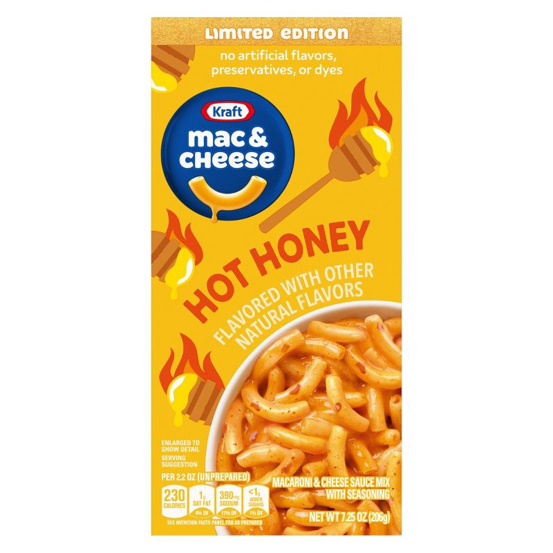 - One 7.25 oz box of Kraft Hot Honey Flavored with Other Natural Flavors Mac & Cheese Macaroni and Cheese Dinner