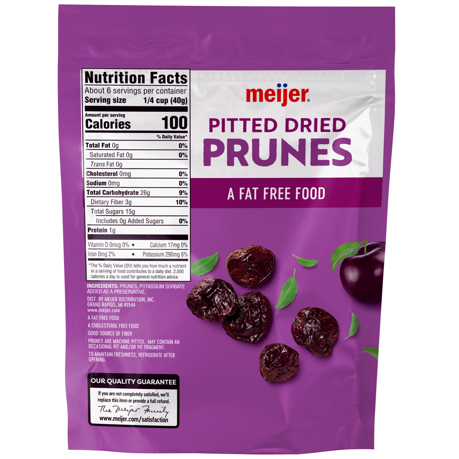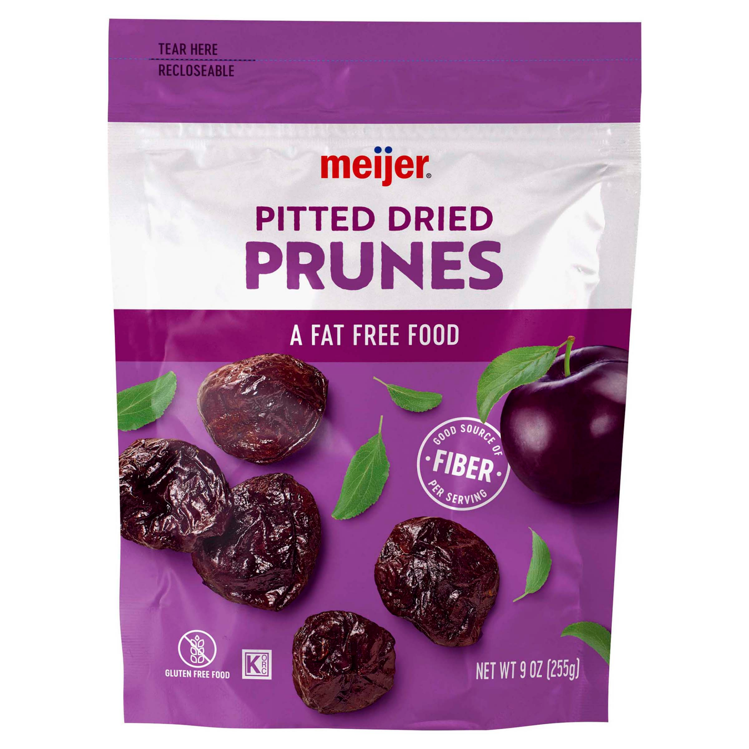 Meijer Pitted Prunes are a delightful addition to your pantry, offering a good source of fiber in a gluten-free and fat-free format. These dried prunes are conveniently packed in a resealable bag, ens…