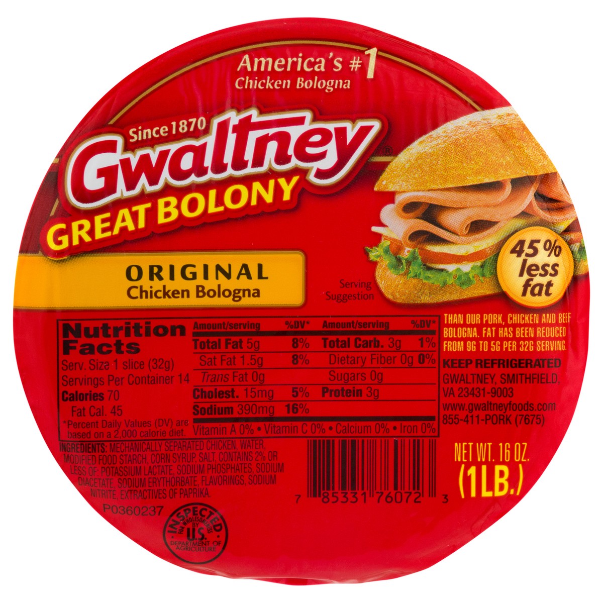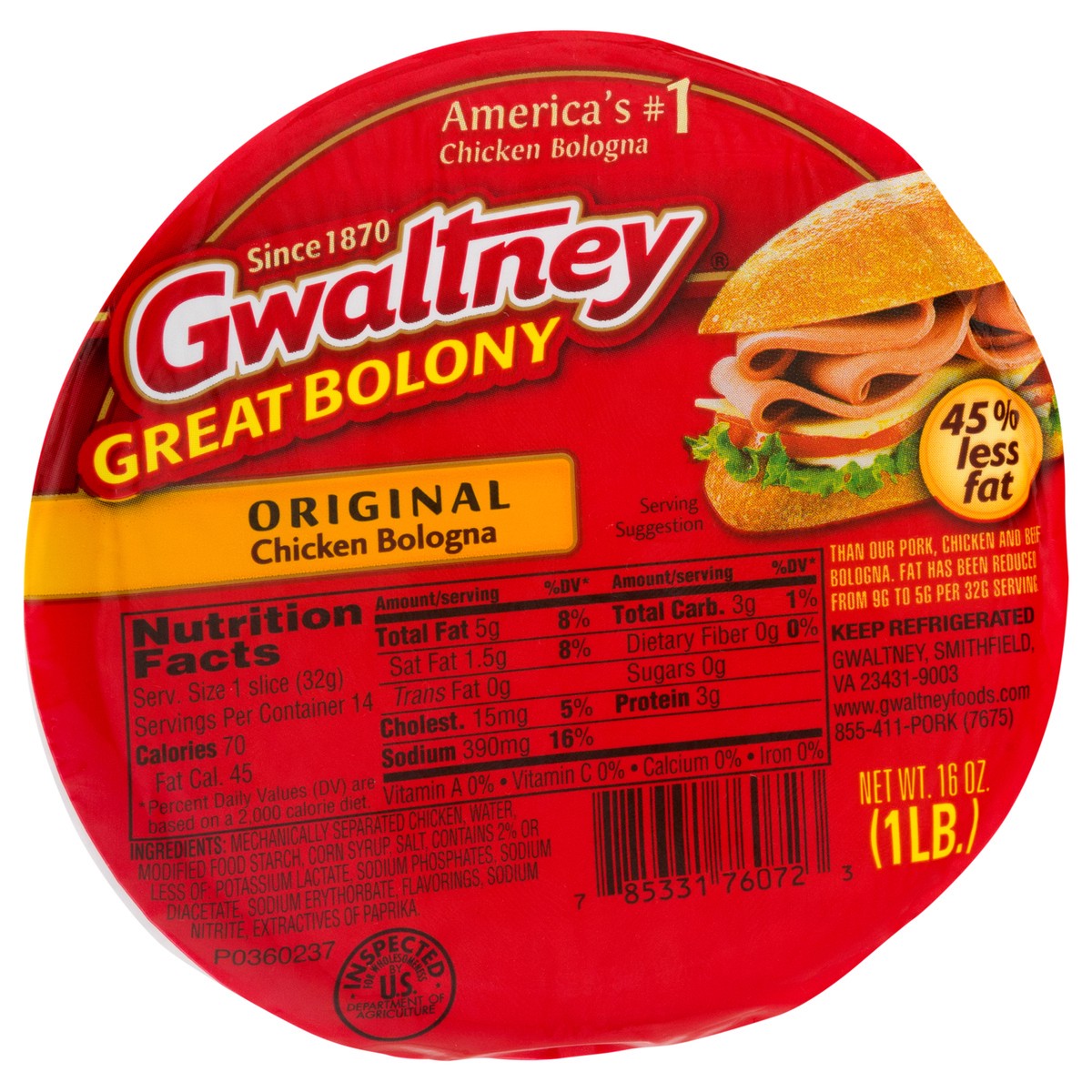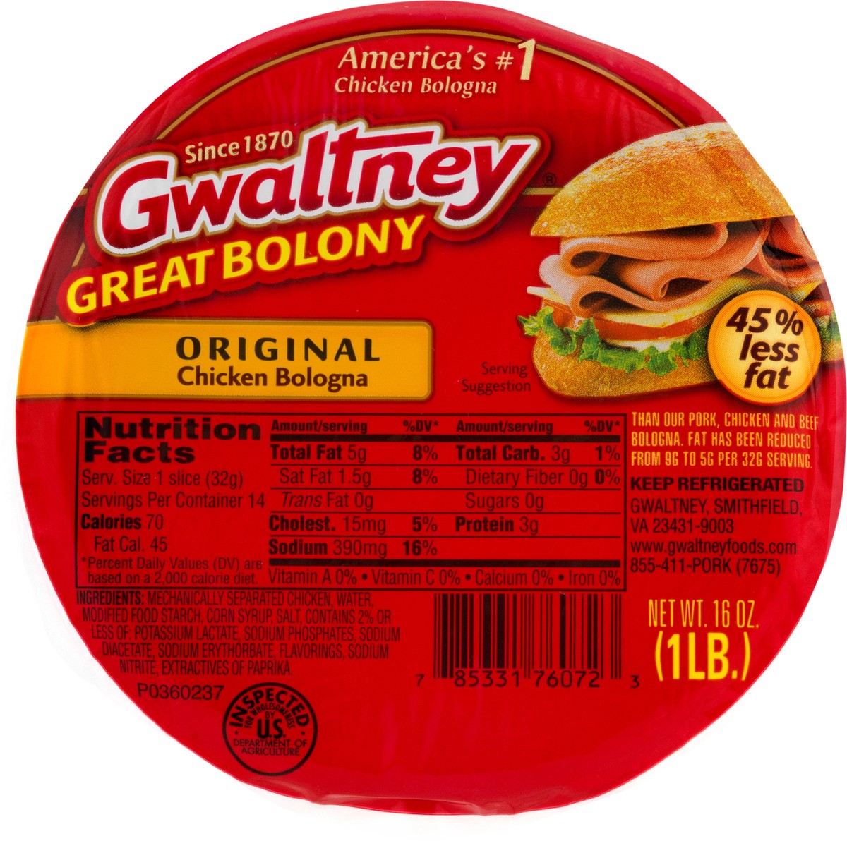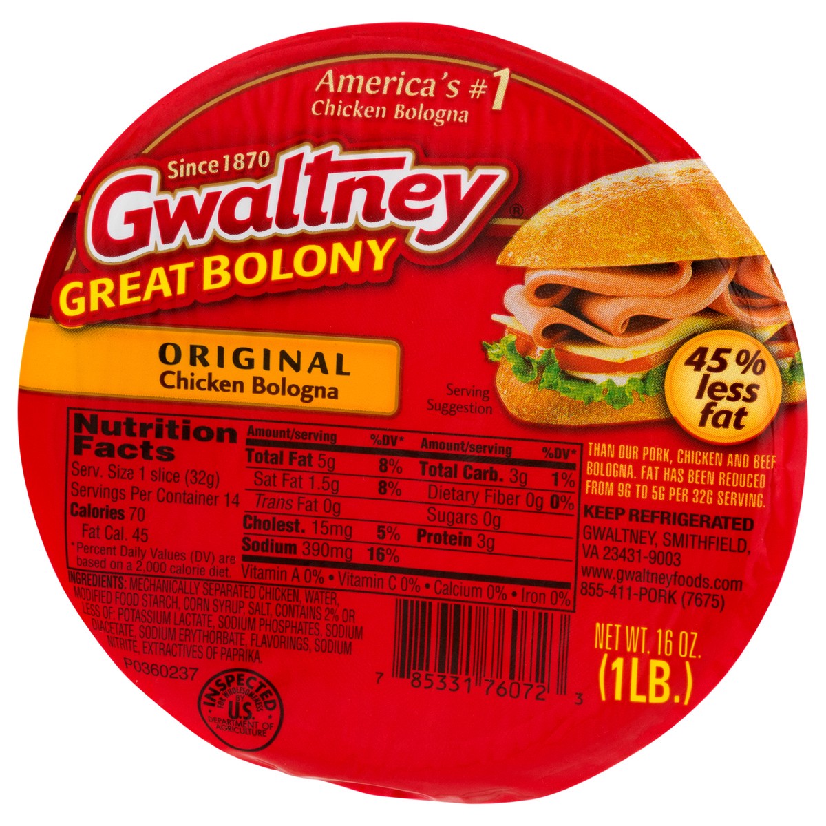 Gwaltney Great Bolony Chicken Bologna Original