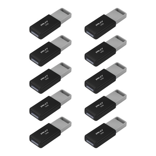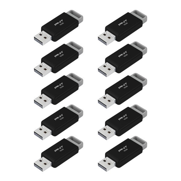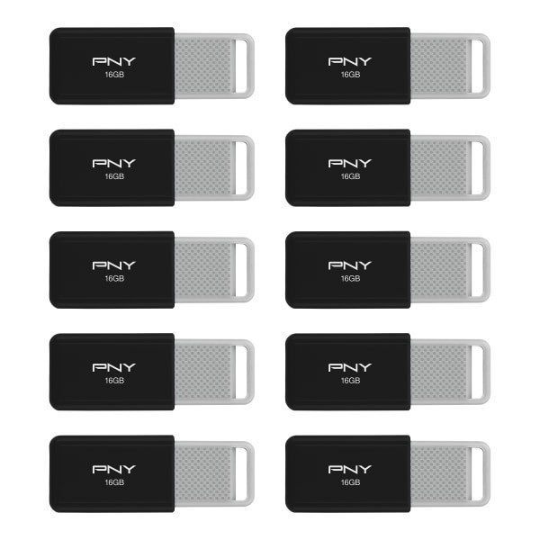 slide 1 of 10, PNY USB 2.0 Flash Drives, 16GB, Black, Pack Of 10 Drives, 1 ct
