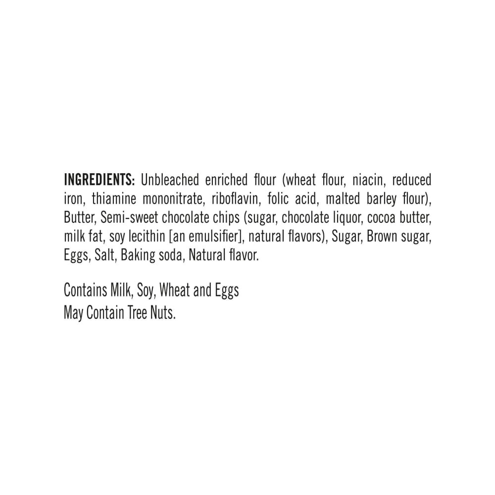 Unbleached Enriched Flour (Wheat Flour, Niacin, Reduced Iron, Thiamine Mononitrate, Riboflavin, Folic Acid, Malted Barley Flour), Butter, Semi-Sweet Chocolate Chips (Sugar, Chocolate Liquor, Cocoa But…